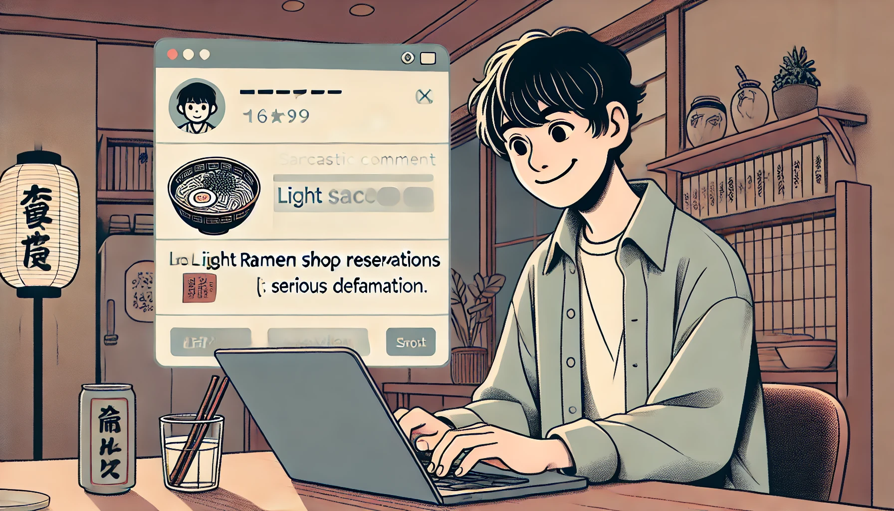 「ラーメンで予約アホ草」というコメントと、さっきの「地震で死ね」というコメントは、法的に同じレベルで扱われるでしょうか?
